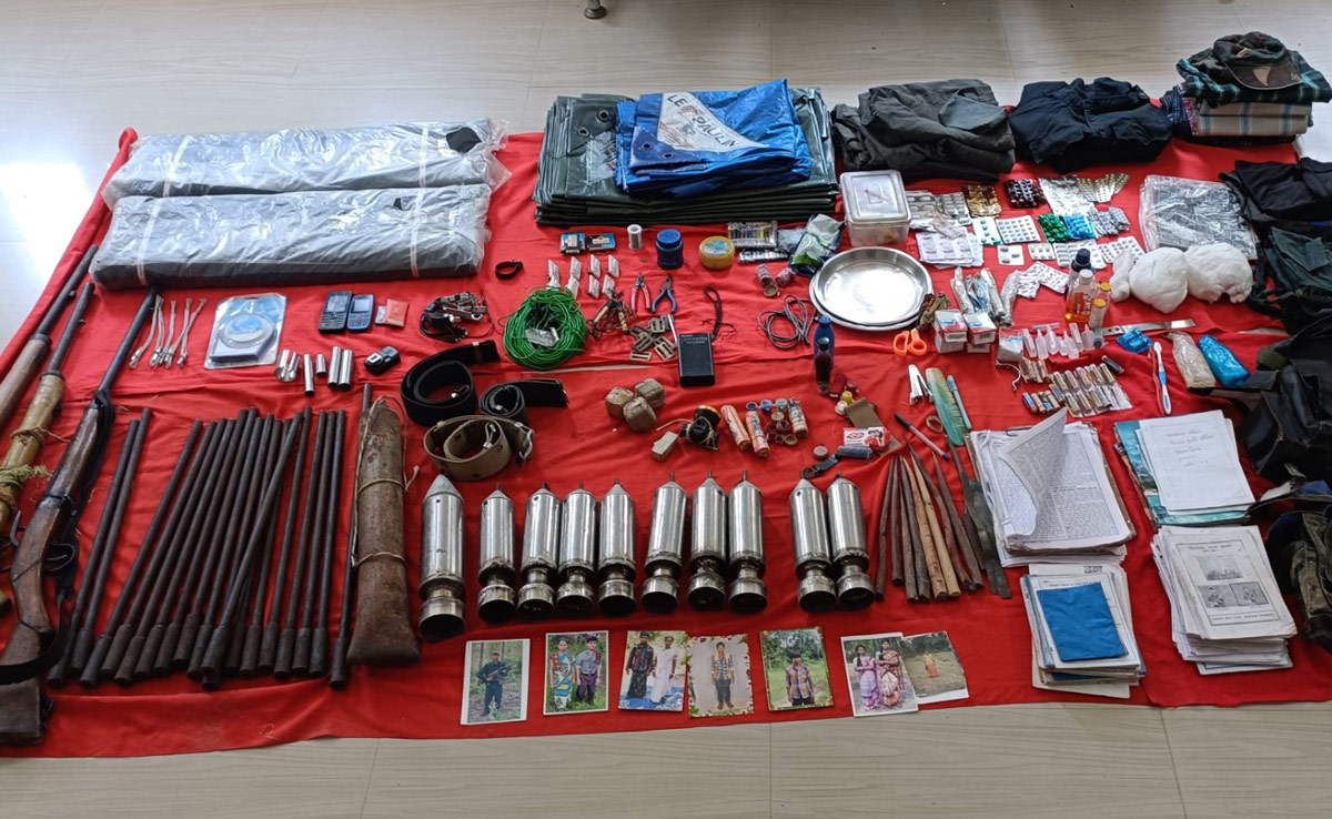 मौके से जवानों ने 03 नग भरमार, पाइप बम, BGLसेल बड़ा, बीजीएल सेल छोटा, सिंगल शॉट बैरल रॉड, ईलेक्ट्रिक डेटोनेटर, बम पटाखा, नक्सली वर्दी, पिट्ठु बैग, बारूद, नक्सलियों की फोटो, नक्सल साहित्य, पर्चे, कैमरा, दवाइयां सहित कई सामानों को बरामद किया है. एसपी किरण चव्हाण ने बताया कि नक्सलियों के कोर जोन में पहली बार विशेष रणनीति के तहत किए गए ऑपरेशन के फलस्वरूप नक्सलियों के साथ भीषण मुठभेड़ में हुई थी. नक्सलियों के डंप हथियार, विस्फोटक सामग्री को बरामद किया गया है.