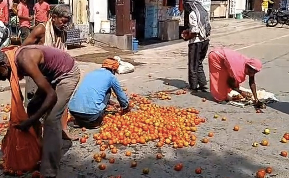 टमाटर कुछ वक्त पहले आम लोगों की पहुंच से दूर हो गया था. अब ये इतना आम हो गया है कि इसकी कीमत मात्र 3-4 रुपए किलो रह गई है. छत्तीसगढ़ के बलरामपुर जिले में अचानक से टमाटर के दाम गिरने से किसान काफी निराश नजर आ रहे हैं. यहां के टमाटर की खेती करने वाले किसान गुरुवार को बड़ी मात्रा में टमाटर लेकर रामानुजगंज मंडी पहुंचे गए. किसानों को यहां टमाटर का उचित दाम नहीं मिला, जिसकी वजह से किसान टमाटरों को सड़क पर ही फेंक कर चले गए.