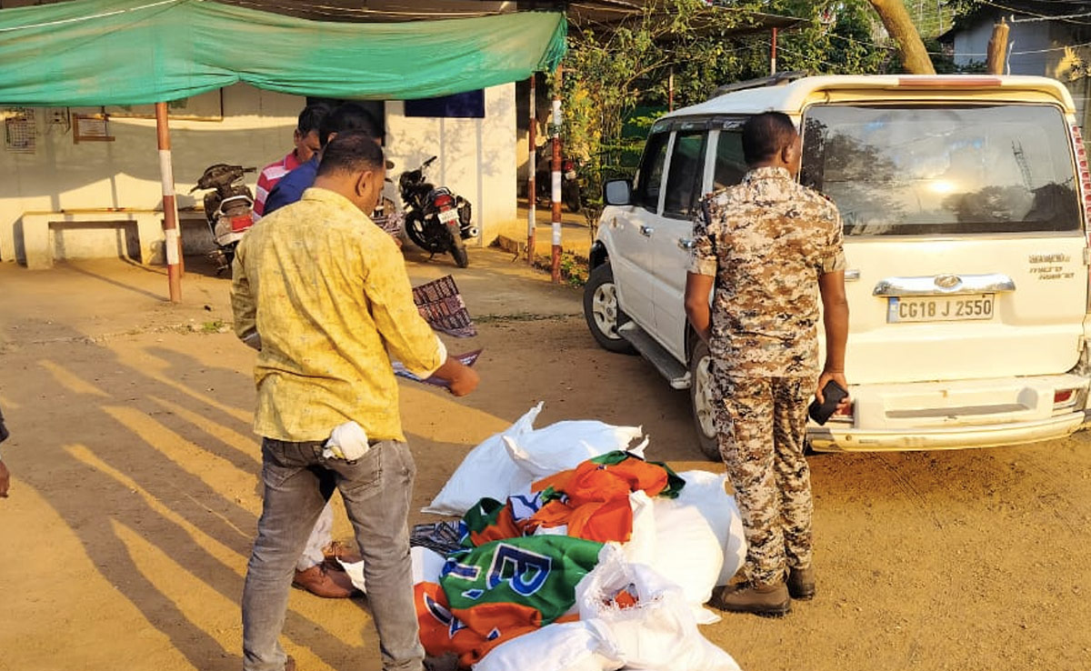 बताया जा रहा है कि ये प्रचार सामग्री भाजपा प्रत्याशी विक्रम देव उसेंडी के प्रचार के लिए ले जाया जा रहा था. विक्रम देव अंतागढ़ से भाजपा के प्रत्याशी हैं. ये पूरा मामला दुर्गुकोंदल थाना क्षेत्र बताया जा रहा है. दरअसल, राज्य में चुनावों की तारीखों के ऐलान के साथ ही राजनीतिक सरगर्मियां तेज हो गई है. राज्य की दोनों ही बड़ी राजनीतिक दल भाजपा और कांग्रेस किसी भी मामले में पेछे रहने के मूड में नजर नहीं आ रही है.
