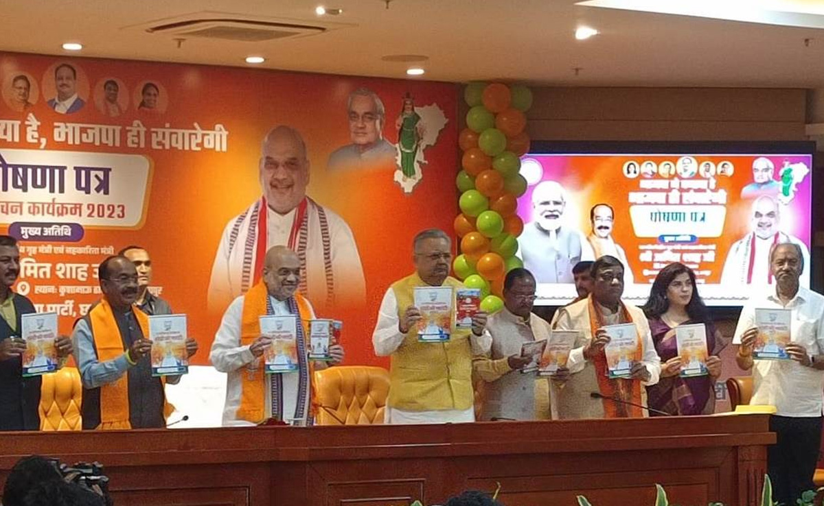 केंद्रीय गृह मंत्री अमित शाह (Amit Shah) ने छत्तीसगढ़ में हो रहे विधानसभा चुनाव (Chhattisgarh Assembly Election) के लिए शुक्रवार को भाजपा का घोषणा पत्र जारी किया. घोषणा पत्र (BJP Manifesto in Chhattisgarh) को 'छत्तीसगढ़ के लिए मोदी की गारंटी 2023' (Modi's guarantee for Chhattisgarh 2023) नाम दिया गया है.