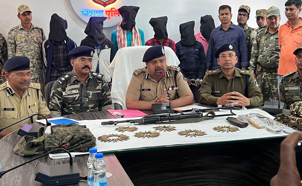 Chhattisgarh-Naxalism: छत्तीसगढ़ (Chhattisgarh) के जशपुर (Jashspur) जिले में पुलिस ने झारखंड जन मुक्ति परिषद (Jharkhand Jan Mukti Parishad) के छह नक्सलियों को गिरफ्तार किया है. यह गिरफ्तारी जिले के नारायणपुर और कुनकुरी थाना क्षेत्रों में पुलिस ने घेराबंदी करके की है. गिरफ्तार किए गए नक्सलियों में झारखंड के टुनेश लाकड़ा उर्फ रवि (36), रंजीत कुमार महतो (29), हेरमन कुमार गन्नुम, राम लाकड़ा (45), तब्सुम अहमद (27) और उड़ीसा के गुलाम शहजादा (21) के नाम शामिल हैं. गिरफ्तार नक्सलियों के पास से एक एके-47 रायफल, एक मैग्जीन और अन्य सामान बरामद किया गया है