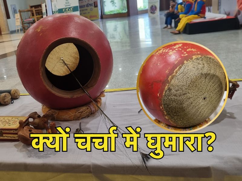 दरअसल, छत्तीसगढ़ सरकार रायपुर के ऑडिटोरियम में 3 अक्टूबर से 5 अक्टूबर तक हरित शिखर कार्यक्रम का आयोजन कर रही है. इस कार्यक्रम में छत्तीसगढ़ के लोक वाद्य यंत्रों की एक प्रदर्शनी लगाई गई है. इस प्रदर्शनी में संस्कृति और परंपरा को प्रदर्शित करने वाले करीब 200 वाद्य यंत्रों का संग्रह है, लेकिन इन वाद्य यंत्रों में सबसे ज्यादा चर्चा लाल रंग के मटके की है. इस मटके से शेर जैसी आवाज निकल रही है. छत्तीसगढ़ी वाद्य यंत्रों का संग्रहण करने वाले रिखी क्षत्रीय बताते हैं कि इस खास वाद्य यंत्र का नाम घुमरा है. कार्यक्रम के उद्घाटन कार्यक्रम में मुख्य अतिथि के रूप में राज्य के मुख्यमंत्री विष्णुदेव साय पहुंचे. सीएम साय ने घुमारा बाजे की विशेष तौर पर जानकारी ली.