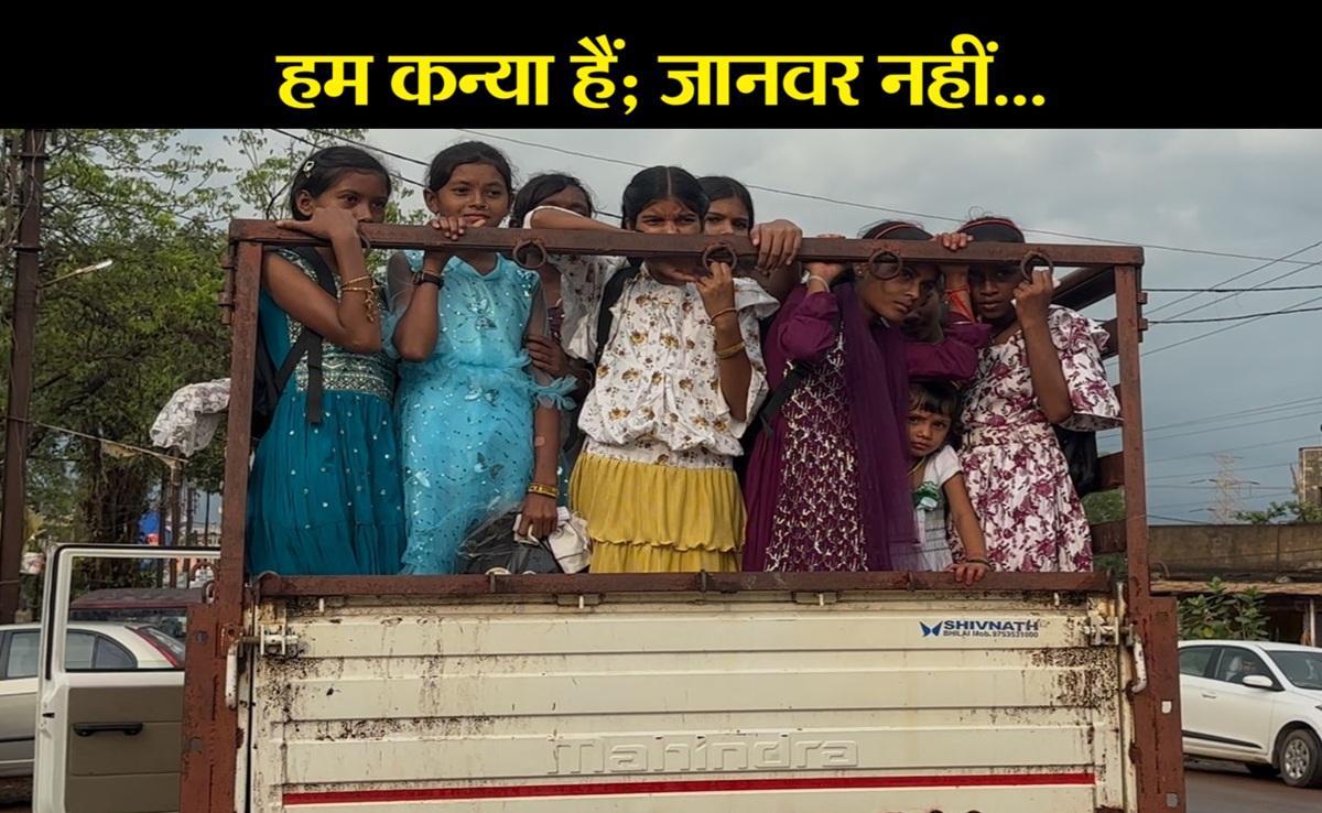 CG News: कन्या भोज में बेटियों को लोडिंग वाहन में ले जाया गया