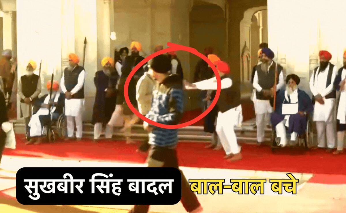 Firing At Golden Temple: शिरोमणि अकाली दल नेता और पंजाब के पूर्व डिप्टी सीएम सुखबीर सिंह बादल पर बुधवार सुबह एक शख्स ने अमृतसर स्थित स्वर्ण मंदिर परिसर पर गोली चला दी. हालांकि ऐनवक्त पर गोली चलाने वाले को रोक लिया गया, जिससे सुखबीर सिंह बादल बाल-बाल बच गए. गोली चलाने वालो शख्स को पकड़कर पुलिस के हवाले कर दिया है. सुखबीर सिंह बाद बेअदबी मामले में अमृतसर मंदिर में एक सेवादार के रूप में दूसरे दिन सजा काटने पहुंचे थे.