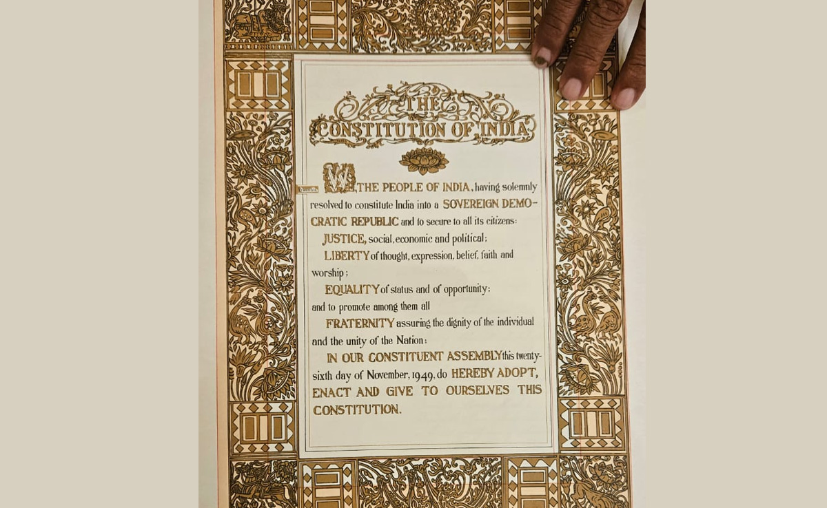 संविधान में भारत की ऐतिहासिक और गौरवशाली सभ्यता और संस्कृति को दर्शाया गया है. यह काम अकेले लेखन से पूरा नहीं हो सकता था, इसलिए संविधान में चित्र भी अलंकृत किए गए. आपको बता दें कि संविधान अंग्रेजी भाषा में लिखा है, इसलिए चित्रों की आवश्यकता महसूस की गई. व्यौहार राममनोहर ने पहले चित्र में सिंधु घाटी की सभ्यता के प्रतीक वृषभ को शामिल किया. उन्होंने अश्व का चित्र भी बनाया, जो गति का घोतक है. इसी प्रकार कई चर्चित और प्राचीन स्थानों के 10 चित्र संविधान में शामिल किए गए.