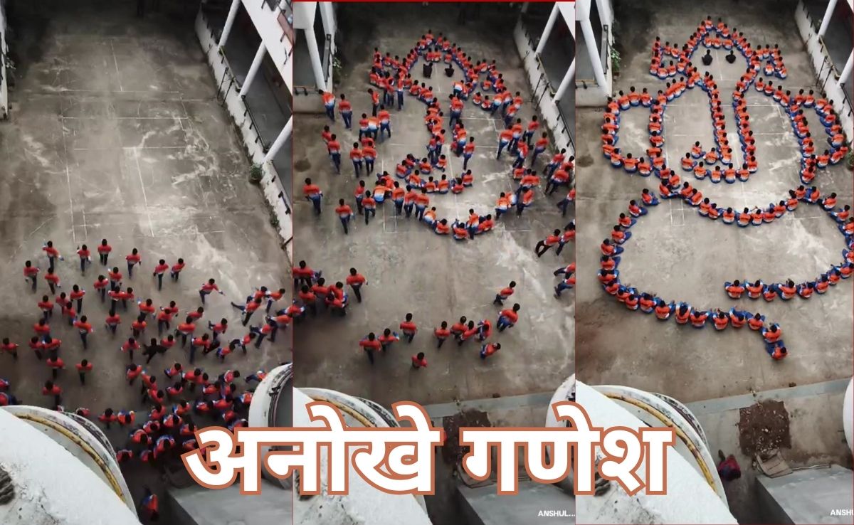 Ganesh Chaturthi Special: मध्य प्रदेश के बैतूल जिले में गणेश चतुर्थी के अवसर पर भगवान गणेश की मानव श्रृंखला के जरिए तैयार की गई भगवान गणेश की आकृति चर्चा में आ गई है. मानव श्रृंखला के जरिए गणेश की मूर्ति बनाने का वीडियो खूब वायरल हो रहा है. वायरल वीडियो में शामिल भारत भारती स्कूल के छात्रों के कारनामों की खूबर प्रशंसा हो रही है. वीडियो में सैकड़ों स्कूली बच्चे भगवान गणेश की आकृति बहुत ही सफाई से बनाया, जो लोगों को खूब पसंद आ रहा है.
