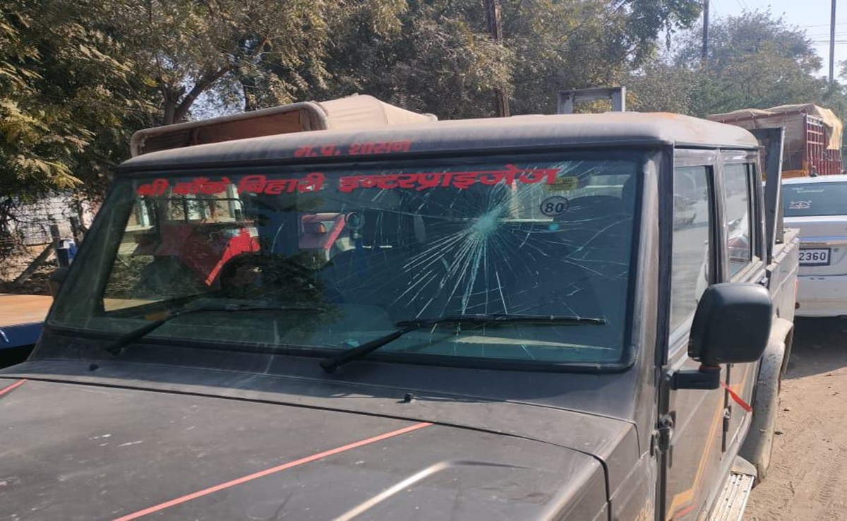 जान बचाकर भागे कर्मचारी, सरकारी वाहन क्षतिग्रस्त