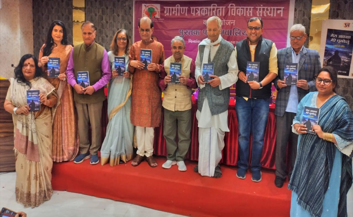 Gwalior News: जाने-माने लेखक और पत्रकार हरीश पाठक द्वारा देश के कुछ पत्रकार और साहित्यकारों के जीवन पर लिखी किताब "मेरेआकाश मेरे धूमकेतु" (Mera Akash, Mere Dhoomketu) का विमोचन (Book Launch) ग्वालियर (Gwalior) में किया गया. इस आयोजन के मुख्य अतिथि एनडीटीवी (NDTV) के रेजिडेंट एडिटर अनुराग द्वारी थे. ग्रामीण पत्रकारिता विकास संस्थान द्वारा आयोजित इस भव्य और गरिमापूर्ण कार्यक्रम की अध्यक्षता वरिष्ठ साहित्यकार और प्रेमचंद सृजन पीठ के पूर्व अध्यक्ष जगदीश तोमर ने की. विशिष्ठ अतिथि और वक्ता के रूप में वरिष्ठ लेखक प्रमोद भार्गव, वरिष्ठ पत्रकार देव श्रीमाली और गीतकार घनश्याम भारती ने उद्बोधन दिया. इस मौके पर जनसंपर्क विभाग के उप संचालक मधु शोलपुरकर और पीआरओ हितेंद्र भदौरिया भी उपस्थित थे. कार्यक्रम का संचालन जानी मानी उद्घोषिका तूलिका शर्मा ने किया.
