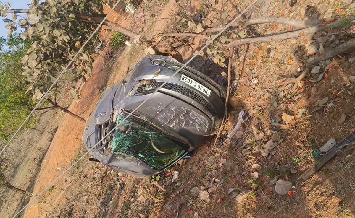 अनियंत्रित होकर खाई में गिरी गाड़ी