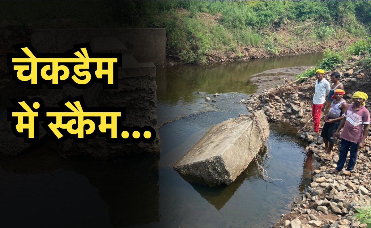 Check-Dam Scam: रोजगार गारंटी योजना के तहत करीब 16 लाख रुपए की लागत से बनाया जा रहा चेकडैम बुधवार को टूटकर तीन हिस्सों में बंट गया. कागज के तिनके की तरह बिखरे निर्माणाधीन चेकडैम के निर्माण में हुए घोटाले को लेकर अब लोग लामबंद हो गए हैं और सरपंच, सचिव, उपयंत्री और सहायक यंत्री पर भ्रष्टाचार का आरोप लगाया है.