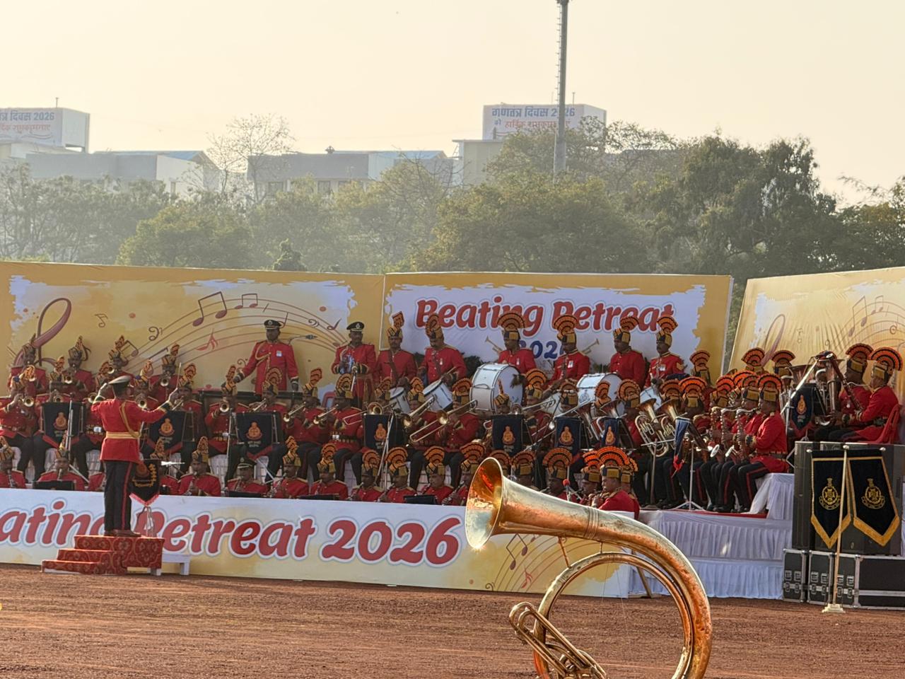 भोपाल में बीटिंग द रिट्रीट समारोह शुरू. प्रदेश के राज्यपाल लाल परेड ग्राउंड पहुंचे.