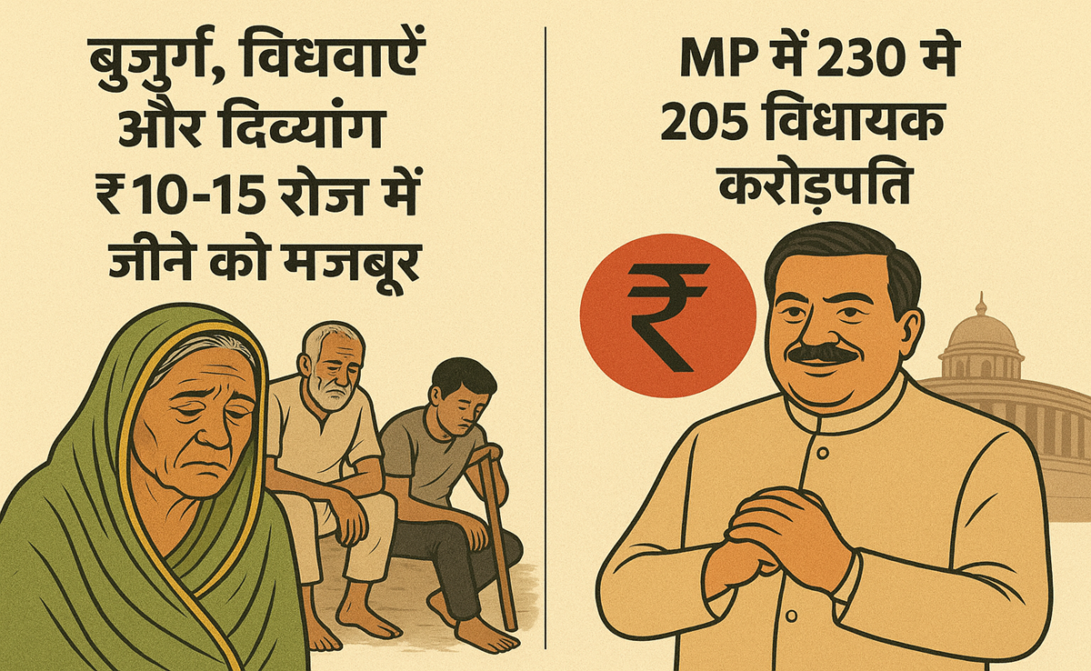 MP News: प्रश्न यह है कि जब करोड़पति विधायक अपनी जेबें भरने के लिए राज्य की ग़रीब जनता पर अतिरिक्त बोझ डाल सकते हैं, तो क्यों वही सरकारें करोड़ों विधवाओं, बुज़ुर्गों और विकलांगों को ₹300 पर ज़िंदा रहने को मजबूर रखती हैं? क्यों पेंशन की रकम बढ़ाने का कोई प्रस्ताव तक नहीं है?