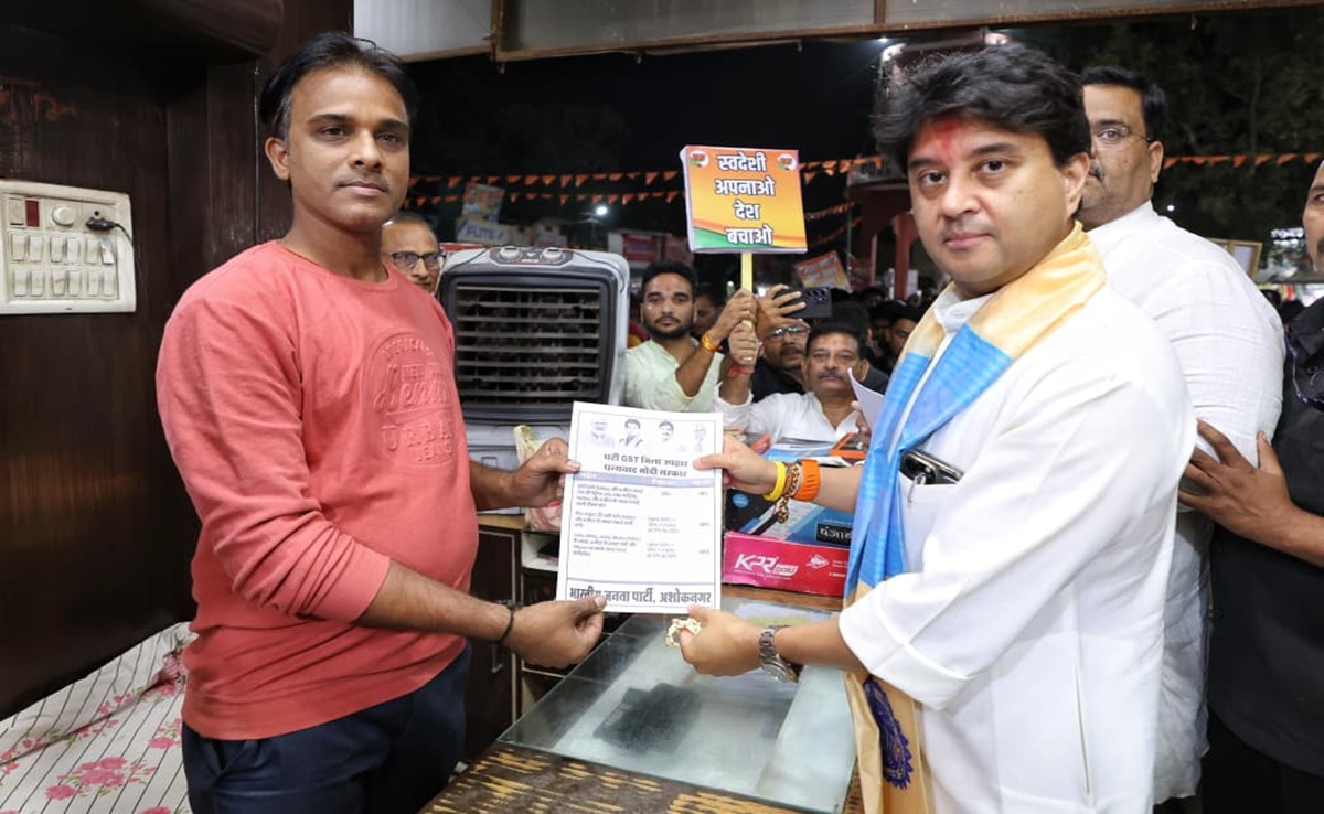 सिंधिया ने सबसे पहले गांधी पार्क मेन मार्केट में 'आत्मनिर्भर भारत संकल्प अभियान' का जायजा लिया. उन्होंने व्यापारियों और नागरिकों से बात करते हुए उन्हें GST बचत उत्सव के महत्व से परिचित कराया. उन्होंने कहा कि यह बचत उत्सव कोई सरकारी योजना नहीं, बल्कि प्रधानमंत्री नरेंद्र मोदी का देश के नागरिकों के लिए दिया गया एक सीधा उपहार है.
