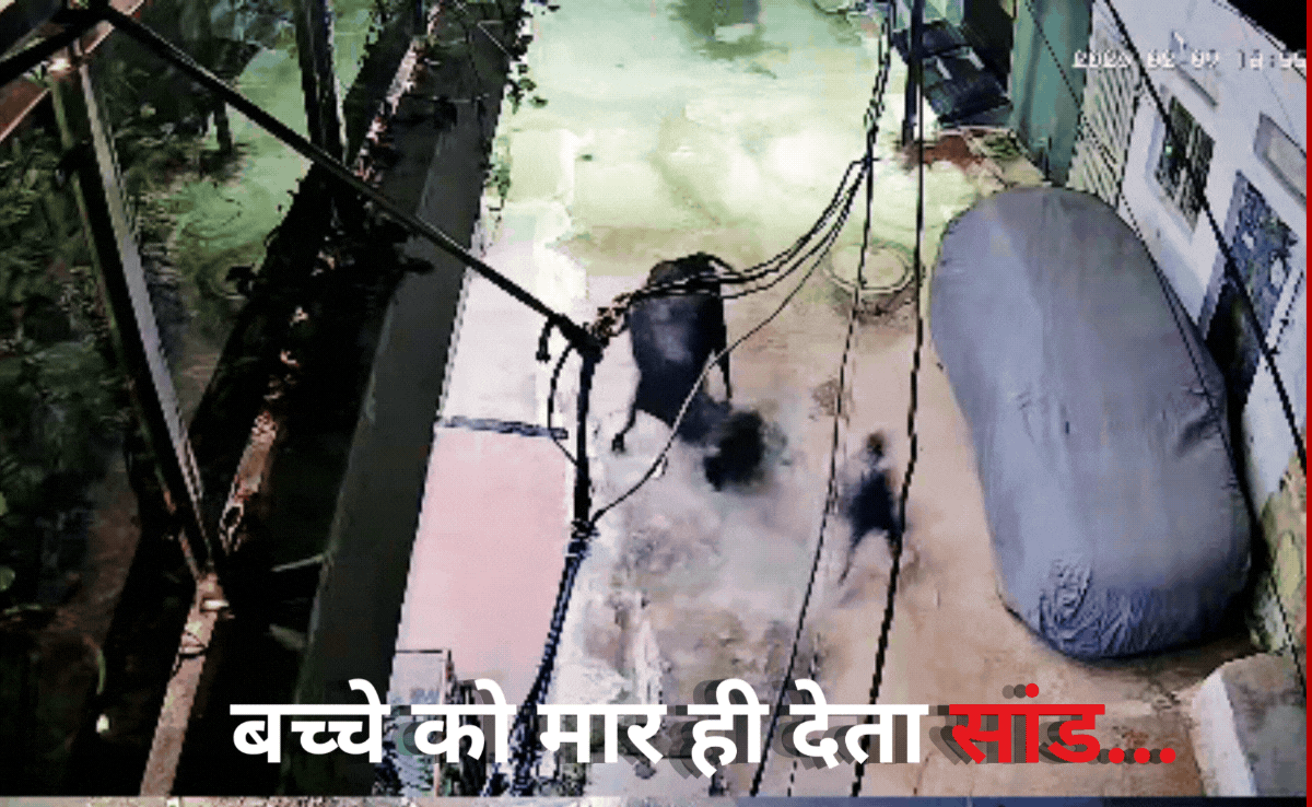सांड से बचने के लिए मासूम ने खूब किया संघर्ष