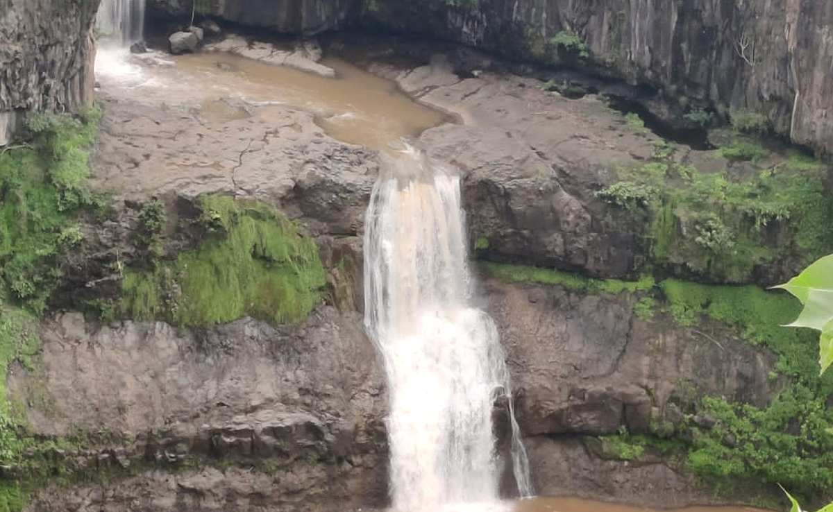 झरने के नीचे पहुंचा और गहराई में लापता हो गया