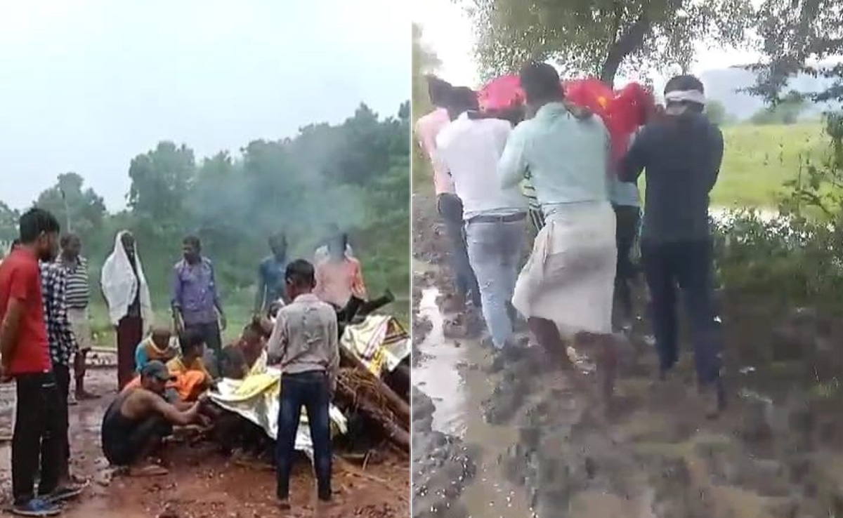 काफी देर इंतजार के बाद भी जब बारिश नहीं रुकी तो परिजनों को तिरपाल (पन्नी) लगाकर बुजुर्ग का अंतिम संस्कार करना पड़ा. इस कठिन अंतिम यात्रा के वीडियो सोशल मीडिया पर जमकर वायरल हो रहे हैं.