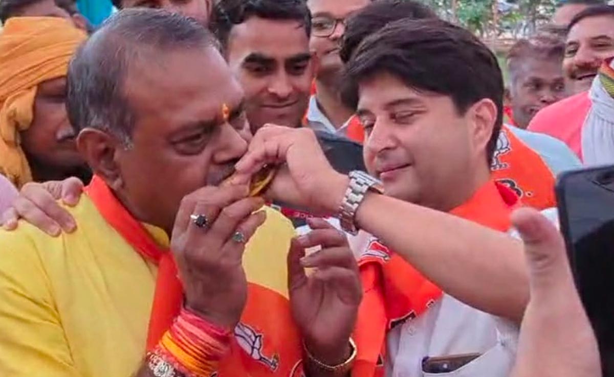 Jyotiraditya Scindia Gwalior News: ग्वालियर (Gwalior) में भारतीय जनता पार्टी (BJP) के बूथ सम्मेलन में पहुंचे केंद्रीय मंत्री ज्योतिरादित्य सिंधिया (Jyotiraditya Scindia) ने भाजपा प्रत्याशी और पूर्व मंत्री नारायण सिंह कुशवाहा को अपने हाथों से समोसा खिलाया और उनका हाल-चाल लिया. सिंधिया के इस अंदाज को भाजपा कार्यकर्ताओं (BJP Workers) और लोगों की ओर से काफी पसंद किया जा रहा है.