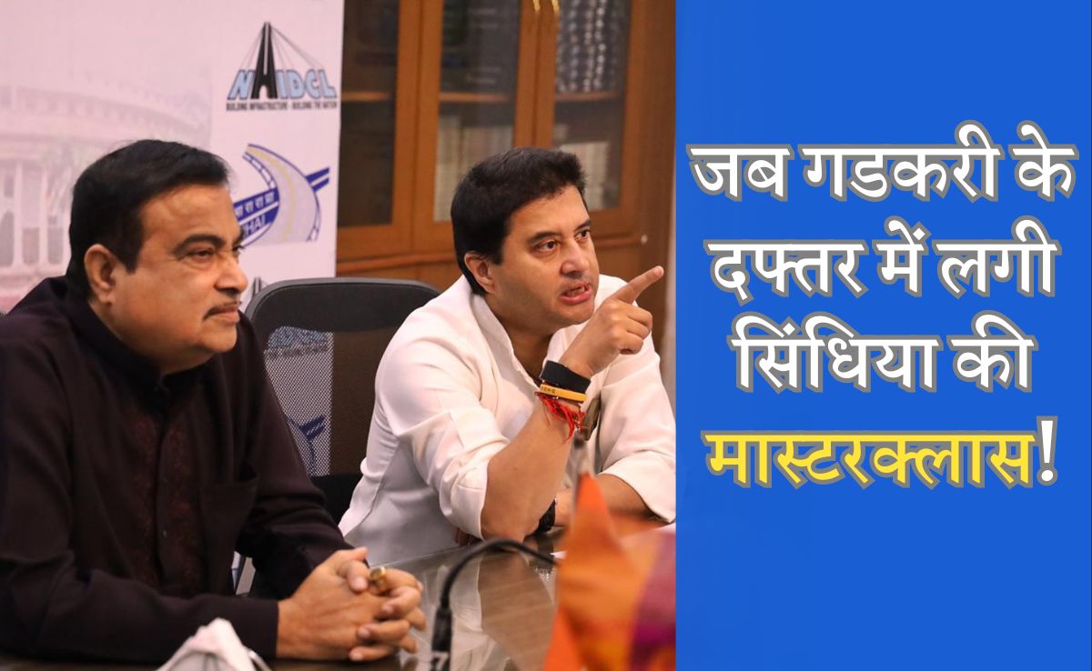 Jyotiraditya Scindia: केंद्रीय टेलीकाम मंत्री ज्योतिरादित्य सिंधिया की एक तस्वीर इंटरनेट पर खूब वायरल हो रही है, जिसमें वो केंद्रीय सड़क और परिवहन मंत्री नितिन गडकरी को उनके ही दफ्तर में स्क्रीन पर रोड मैप समझाते हुए दिखाई दे रहे हैं. इंटरनेट पर वायरल रही तस्वीर में सिंधिया मंत्री गडकरी को रोड मैप के जरिए ग्वालियर चंबल संभाग में परिवहन की बढ़ती मांगों को समझाने को कोशिश कर रहे हैं.