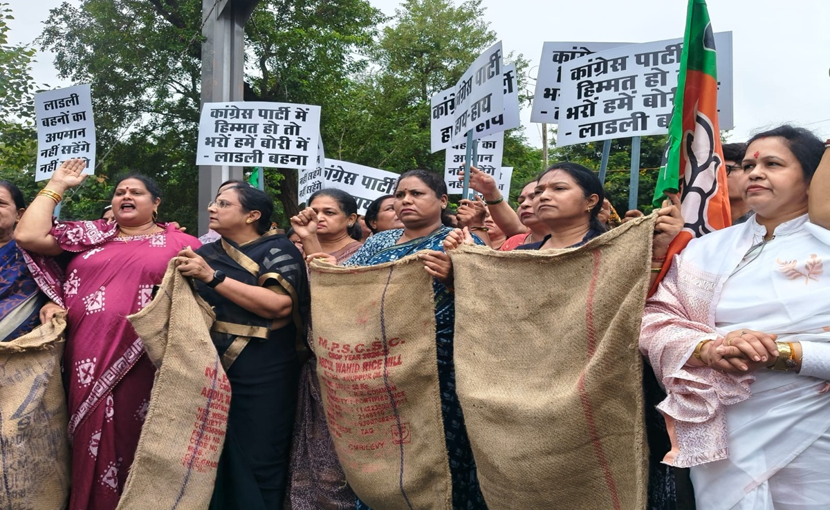 महिला मोर्चा की मांग है कि इस मुद्दे पर सार्वजनिक तौर पर माफी मांगी जाए. बीजेपी महिला मोर्चा की कार्यकर्ताओं ने कहा हम बोरी लेकर इसलिए आएं हैं कि अगर किसी में दम हो तो हम लाडली बहनों को बोरी में भरकर दिखाए.