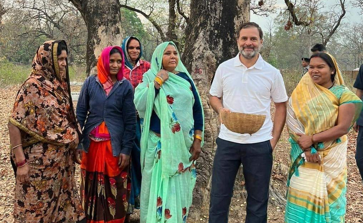 उमरियामें महुआ चुनने वाली महिलाओं से मिले राहुल गांधी और उनकी समस्याओं को जाना