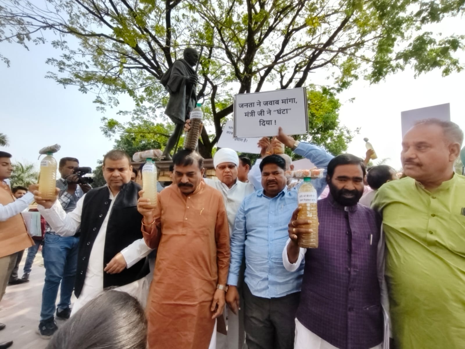 Madhya Pradesh Vidhan Sabha Budget Session: मध्य प्रदेश विधानसभा के बजट सत्र के दूसरे दिन विधानसभा की कार्यवाही शुरु होने से पहले कांग्रेस विधायकों (Congress MLAs Protest Outside Assembly) ने इंदौर में दूषित पानी से लोगों की मौत के मामले में कांग्रेस ने प्रदर्शन किया. कांग्रेस विधायको ने हाथों में गंदे पानी की बोतल के ऊपर लाश बनाकर पहुंचे. कांग्रेस विधायकों ने लाशों पर राजनीति करने का आरोप लगाया और जवाबदेही तय करने की मांग. साथ ही मंत्री कैलाश विजयवर्गीय के इस्तीफे की मांग की. वहीं, नेता प्रतिपक्ष उमंग सिंघार कहा कि इंदौर के भागीरथपूरा में दूषित पानी से लोगों की मौत के मामले में चर्चा होनी चाहिए. हमने चर्चा के लिए स्थगन प्रस्ताव दिया है. चर्चा करना सरकार का काम है.