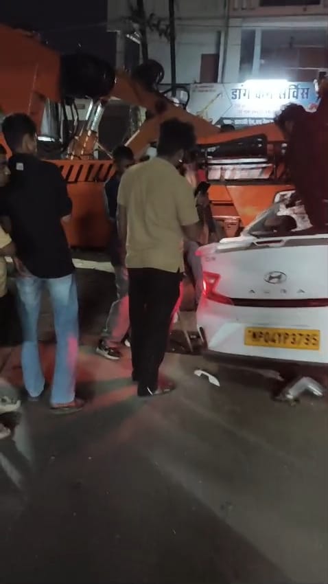 Madhya Pradesh Hindi News: खड़ी क्रेन से टकराई कार, तीन युवकों की मौत