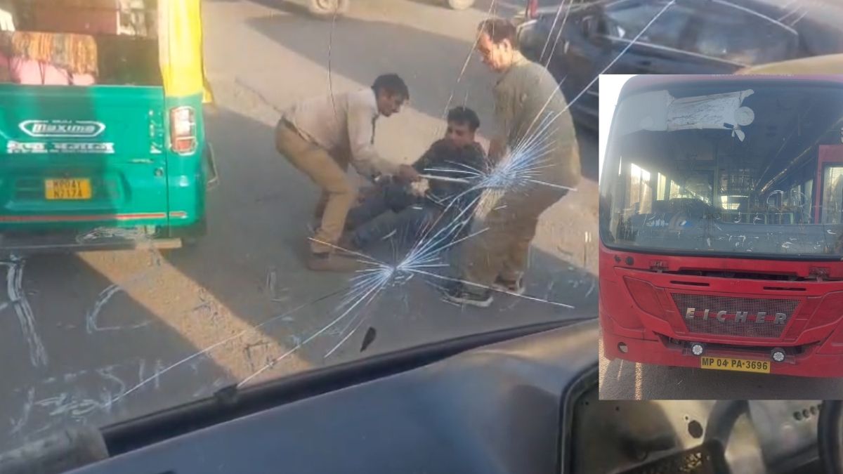 Bhopal Ruckus: भोपाल के करोंद चौराहे पर जमकर हंगामा हुआ, जब एक दिव्यांग व्यक्ति ने लाल बस पर ईंट मारकर कांच तोड़ दिया. बस ड्राइवर-कंडक्टर और दिव्यांग के बीच सड़क पर मारपीट हुई. दिव्यांग ने ड्राइवर पर धक्का देने का आरोप लगाया, जबकि ड्राइवर ने आरोपों से इनकार किया. प्रत्यक्षदर्शियों के मुताबिक, व्यक्ति नशे की हालत में था.