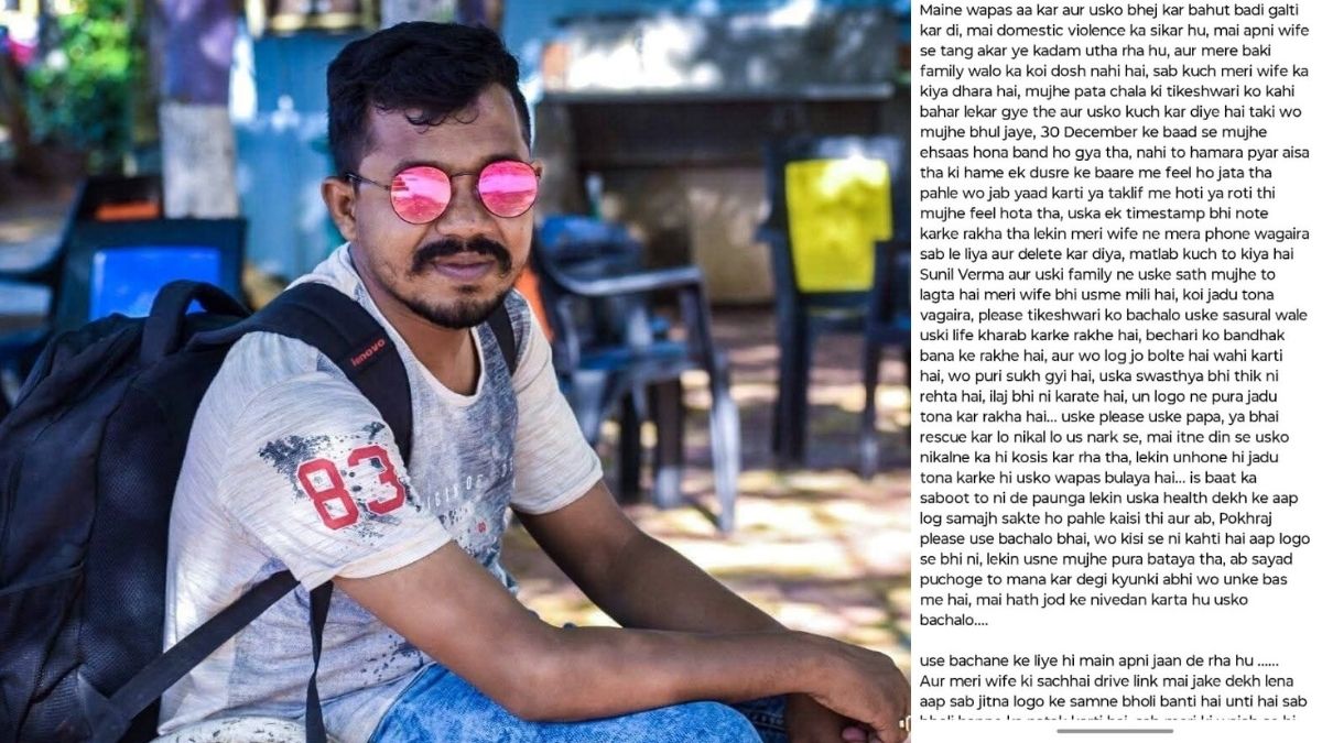Bhilai Man Suicide Accused Wife for away from Girlfriend: दुर्ग जिले के भिलाई में निजी कॉलेज में कार्यरत ग्राफिक डिजाइनर किराए के मकान में फांसी लगाकर आत्महत्या कर ली. आत्महत्या से पहले उसने फेसबुक पर एक लंबी पोस्ट शेयर की, जिसमें उसने पूरा दोष अपनी पत्नी पर लगाते हुए लिखा कि उसकी पत्नी ने मिलकर उसकी महिला मित्र (गर्लफ्रेंड) पर जादू टोना करवाकर उसे उससे अलग कर दिया. युवक का नाम भोज नारायण (36) था. वह भिलाई स्थित रुंगटा कॉलेज में सीनियर ग्राफिक्स डिज़ाइनर के रूप में काम करता था. मूल रूप से वह गरियाबंद जिले के राजिम का निवासी था और भिलाई में अपनी पत्नी के साथ किराए के मकान में रहता था.