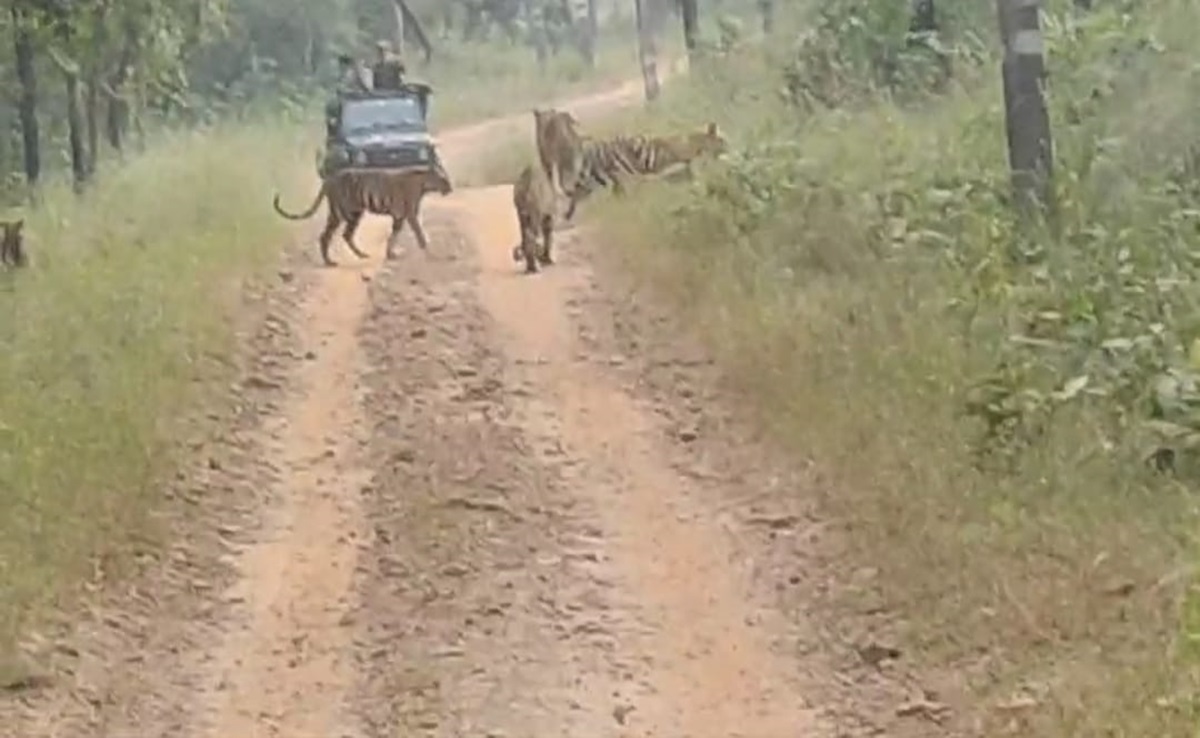 Tiger Reserve: संजय टाइगर रिजर्व में पर्यटकों का मन मोह रहे हैं वनराज, खुले में घूमते दिखे एक साथ इतने बाघ
