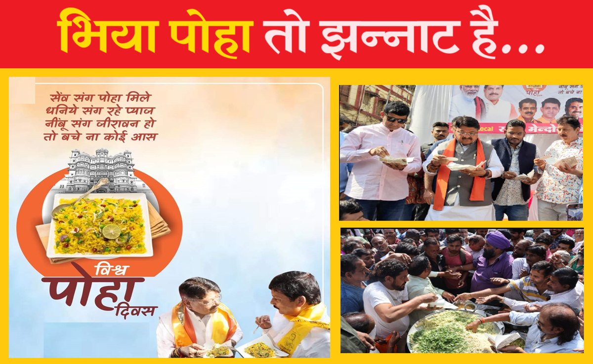 World Poha Day Celebration in Indore: देश के सबसे स्वच्छतम शहर इंदौर (Indore) के जायकों का स्वाद भी लाजवाब है. इंदौर का पोहा (Indori Poha) देशभर में प्रसिद्ध है. इसी पोहे को एक अलग पहचान दिलाने के लिए इंदौर में विश्व पोहा दिवस (World Poha Day) का आयोजन हुआ. इस आयोजन में इंदौर के महापौर पुष्यमित्र भार्गव (Pushyamitra Bhargav), विधायक रमेश मेंदोला (Ramesh Mendola) और मध्य प्रदेश के नगरीय प्रशासन मंत्री कैलाश विजयवर्गीय (Kailash Vijayvargiya) भी शामिल हुए. महापौर ने इस पर लिखा है कि खानपान के क्षेत्र में इंदौरी पोहा ने अपनी अलग पहचान स्थापित की है. हमारे यशस्वी प्रधानमंत्री नरेंद्र मोदी (Prime Minister Narendra Modi) ने भी इंदौर के खान-पान में महत्वपूर्ण भूमिका निभाने वाले इंदौरी पोहा और जीरावन की प्रशंसा की है.