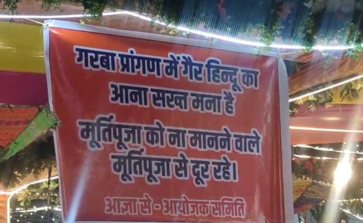 Navratri 2025 Garba Row MP: नवरात्रि पर्व की शुरुआत के साथ ही रतलाम के कालिका माता परिसर में गरबा पंडाल पर लगे बैनर चर्चा का विषय बन गए हैं. इन बैनरों पर साफ लिखा गया है – “गरबा प्रांगण में गैर-हिन्दुओं का प्रवेश सख्त मना है. मूर्तिपूजा को न मानने वाले मूर्तिपूजा से दूर रहें.” आयोजकों का तर्क है कि यह फैसला सुरक्षा और सामाजिक कारणों से लिया गया है. पंडाल में प्रवेश केवल पास और आईडी चेक करने के बाद ही दिया जा रहा है. साथ ही, तिलक लगाने की शर्त भी रखी गई है. आयोजकों का कहना है कि यह व्यवस्था खासतौर पर महिलाओं और बालिकाओं की सुरक्षा को ध्यान में रखते हुए लागू की गई है.