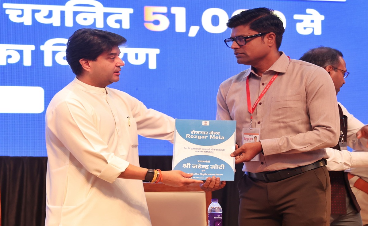 15th edition of Rozgar Mela: प्रधानमंत्री नरेंद्र मोदी (PM Modi) ने शनिवार को वीडियो कॉन्फ्रेंसिंग के जरिए 'रोजगार मेले' (Rozgar Mela) के तहत देशभर से चयनित 51,000 युवाओं को वर्चुअली नियुक्ति पत्र (Appointment Letters) बांटा. इस दौरान कई राज्यों में रोजगार मेले के तहत कार्यक्रम आयोजित हुए, जिसमें केंद्र सरकार के मंत्री मौजूद रहे. मध्य प्रदेश के ग्वालियर में आयोजित एक कार्यक्रम में केंद्रीय मंत्री ज्योतिरादित्य सिंधिया मौजूद (Jyotiraditya Scindia) रहें. उन्होंने चयनित युवाओं को नियुक्ति पत्र सौंपे. 'रोजगार मेले' में नियुक्ति पत्र मिलने के बाद युवाओं में खुशी देखने को मिली. रोजगार पाने वाले युवाओं ने प्रधानमंत्री नरेंद्र मोदी को धन्यवाद बोला.