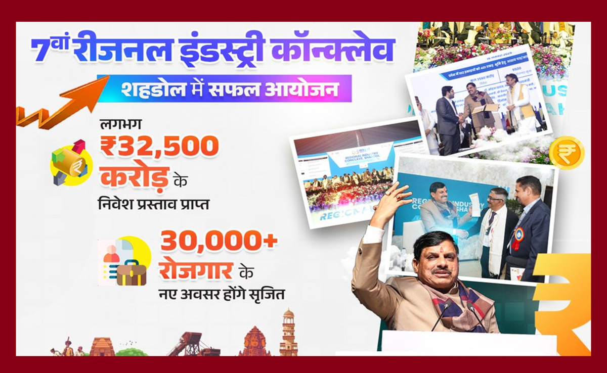 Regional Industrial Conclave Shahdol: मध्य प्रदेश के विंध्य क्षेत्र के शहडोल में आयोजित रीजनल इंडस्ट्रियल कॉन्क्लेव (Regional Industry Conclave) में मुख्यमंत्री डॉ मोहन यादव (CM Mohan Yadav) ने सिंगल क्लिक के माध्यम से 30 औद्योगिक इकाइयों का शिलान्यास व लोकार्पण किया. इन इकाइयों में ₹572 करोड़ से अधिक का निवेश प्रस्तावित है, जिससे लगभग 2600 रोजगार के अवसर सृजित होंगे. इसके अलावा सीएम मोहन यादव ने औद्योगिक क्षेत्र गोहपारू का शिलान्यास एवं उप तहसील टप्पा में राजस्व कार्यालय भवन का लोकार्पण करने के साथ "इन्वेस्ट शहडोल" पुस्तिका का विमोचन कर बधाई व शुभकामनाएं दीं. कार्यक्रम के बाद बताया गया कि 7वें रीजनल इंडस्ट्री कॉन्क्लेव में लगभग ₹32,500 करोड़ के निवेश प्रस्ताव प्राप्त हुए. वहीं इससे 30,000 से ज्यादा रोजगार के नए अवसर सृजित होंगे.