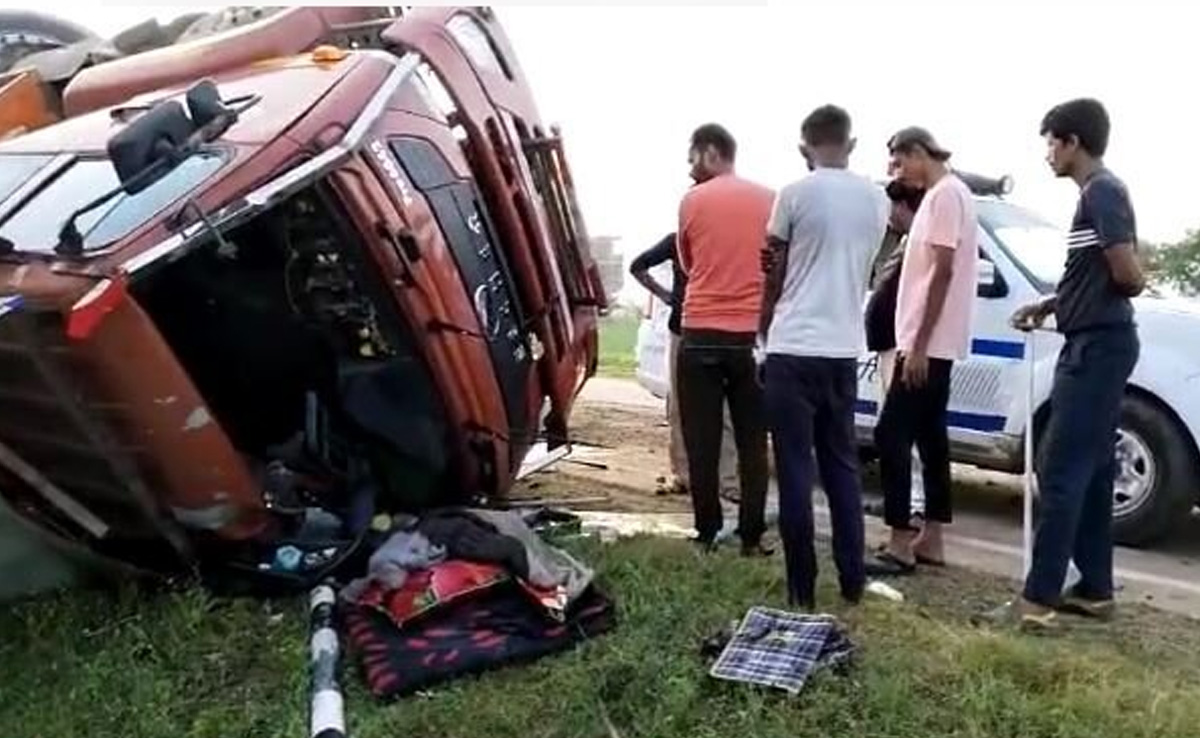 ड्राइवर ने अपना नियंत्रण खो दिया और ट्रक पलट गया