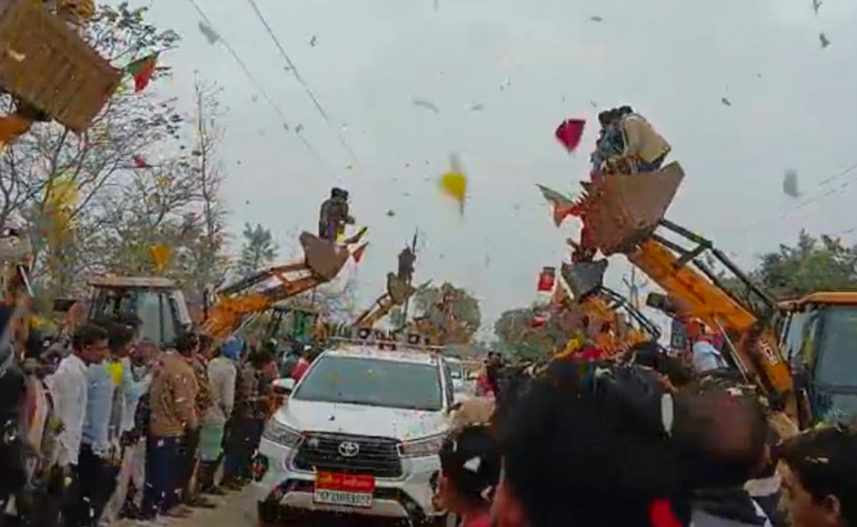 शिवपुरी जिले की खनियाधाना तहसील में हितग्राही सम्मेलन को संबोधित करने पहुंचे सिंधिया का स्वागत यहां के सैकड़ों स्थानीय भाजपा कार्यकर्ताओं ने दर्जनों जेसीबी के ऊपर चढ़कर पुष्प वर्षा से किया. इसके लिए इलाके में दर्जनभर से ज्यादा जेसीबी का उपयोग किया गया. इन जेसीबी पर खड़े होकर कार्यकर्ताओं की पुष्प वर्षा का यह वीडियो सोशल मीडिया पर खूब वायरल हो रहा है.
