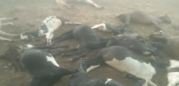Ashoknagar Weather: अशोकनगर (Ashoknagar) जिले में आज मौसम (Weather) ने अचानक करवट बदली और दोपहर से तेज आंधी के साथ बारिश का दौर चालू हुआ, जिसके चलते अशोकनगर शहर में लगभग पांच घण्टे बिजली सप्लाई पूरी तरह से बन्द रही. वहीं जिले में कई जगह ओले भी गिरे. लेकिन नईसराय थाना क्षेत्र के डुंगासरा गांव में दोपहर दो बजे के करीब एक बड़ी घटना सामने आई. गांव के पास बरगद के पेड़ के नीचे बैठी बकरियों पर आकाशीय बिजली गिर गई. इस हादसे में चार बकरी पालकों की 58 बकरियों की मौके पर ही मौत हो गई. कुछ बकरियां घायल भी हुईं.