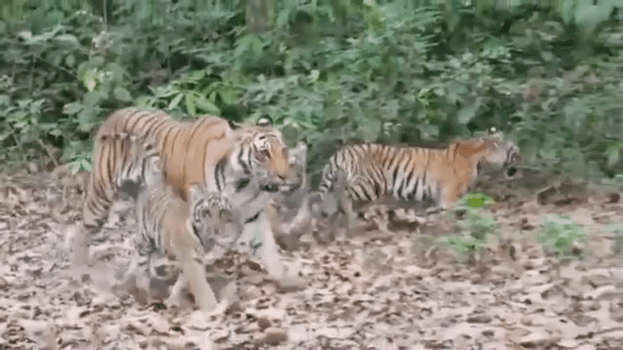 Tigeress Movement: यहां ग्रामीण दहशत में हैं... तामिया के कुआबादला में 3 शावकों के साथ दिखी बाघिन, अलर्ट जारी