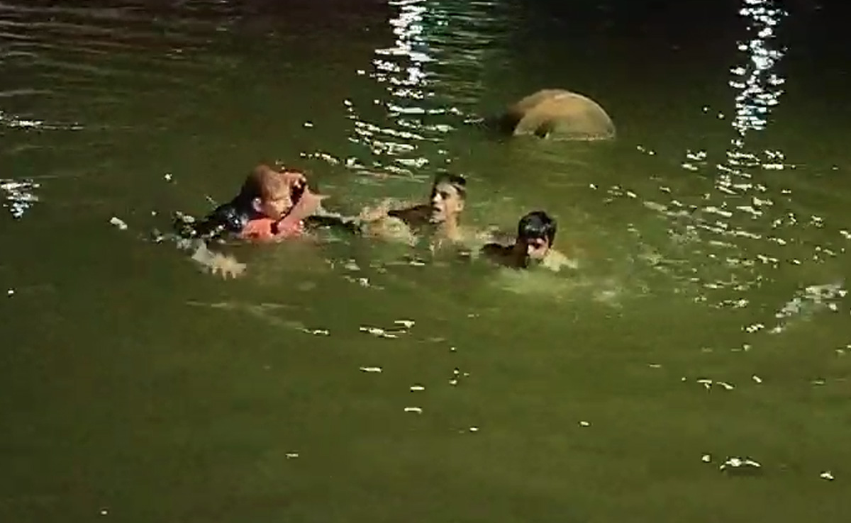 उज्जैन में महाकाल के दर्शन के लिए आया एक युवक शुक्रवार को शिप्रा नदी में डूबने लगा. इस युवक को बचाने के लिए एक होमगार्ड जवान नदी में कूदा लेकिन पानी का बहाव इतना तेज था कि ये जवान भी नदी में डूबने लगा. गनीमत ये रही कि एनडीआरएफ की टीम ने दोनों को बचा लिया. बताया जा रहा है कि भोपाल का रहने वाला 17 साल का युवक, अपने परिवार वालों के साथ महाकाल के दर्शन करने उज्जैन आया था. शुक्रवार की सुबह ये युवक शिप्रा नदी में नहाने के लिए गया था, इस दौरान इसका पैर फिसल गया और वो नदी में डूबने लगा. युवक को डूबते देख इसके परिजन चिल्लाने लगे. परिजनों की आवाज सुनकर यहां तैनात हौमगार्ड महेश प्रजापत, नदी में कूद पड़ा. लेकिन वो होमगार्ड जवान भी नदी में डूबने लगा. दोनों को डूबता देख मौके पर मौजूद एनडीआरएफ का एक जवान भी नदी में कूद गया और दोनों को बचाकर नदी से बाहर ले आया.