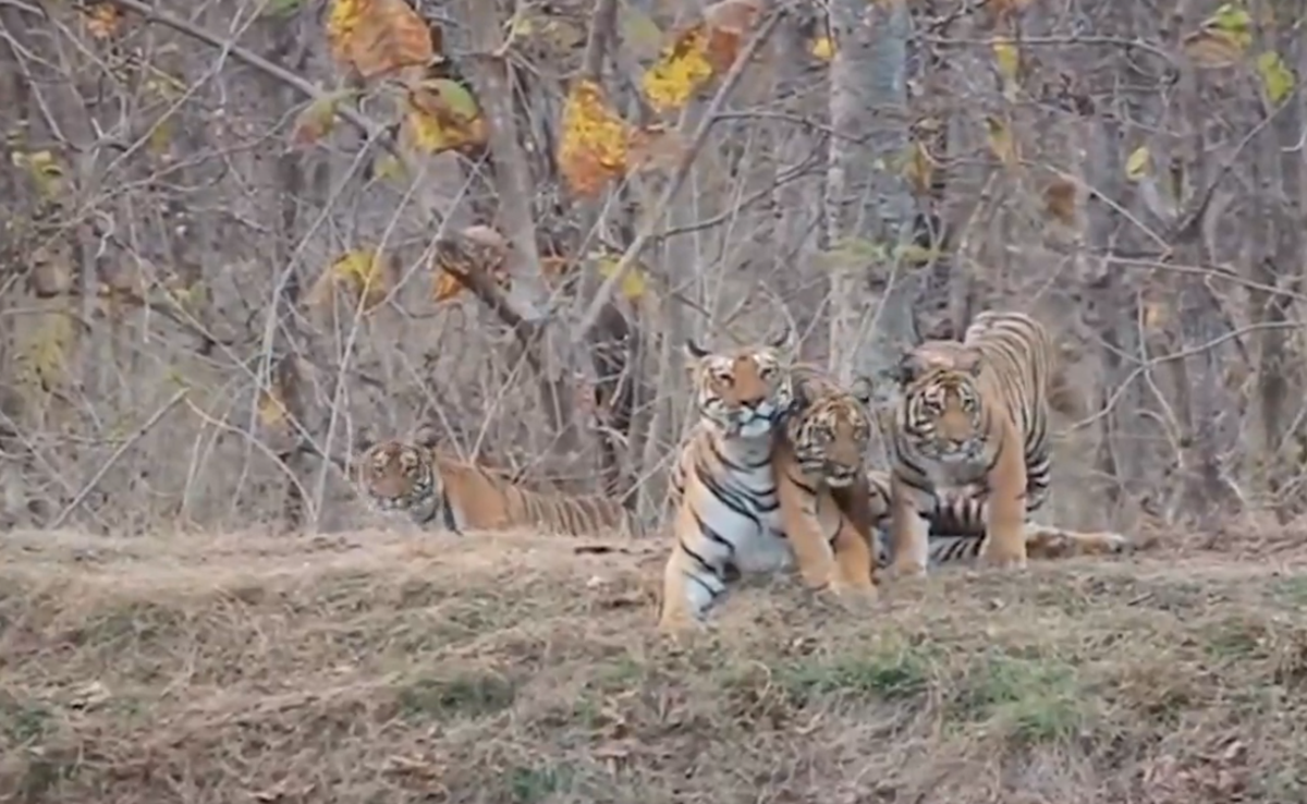 Satpura Tiger Reserve: मध्य प्रदेश के नर्मदापुरम जिले में सतपुड़ा टाइगर रिजर्व (Satpura Tiger Reserve) में तीन शावकों के साथ विचरण करती बाघिन ने पर्यटकों का मन मोह लिया. इसने पर्यटकों की उस अभिलाषा को पूरा कर दिया, जिसे लेकर वे यहां आए थे. बताया गया है कि सतपुड़ा टाइगर रिजर्व के बफर जोन में सफारी के दौरान पर्यटकों को एक बाघिन अपने तीन शावकों के साथ दिखाई दी. बफर जोन में बाघिन के तीन शावकों के साथ खेलने का रोमांचक नजारा पर्यटकों ने अपने कैमरों में कैद किया. इस क्षेत्र से गुजरते हुए पर्यटकों ने जिप्सी को रोककर वीडियो भी बनाए. एसटीआर के सोहागपुर असिस्टेंट डायरेक्टर अंकित जामोद ने इस दृश्य की पुष्टि की.