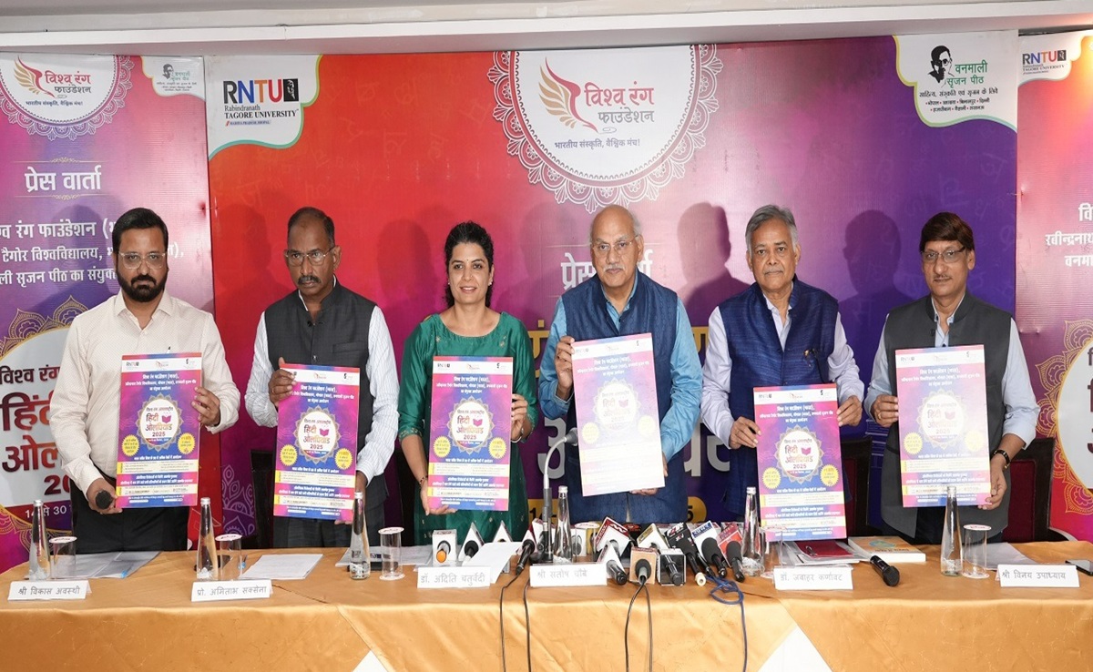International Hindi Olympiad: हिंदी भाषा के वैश्विक प्रचार-प्रसार और नई पीढ़ी को हिंदी से जोड़ने के उद्देश्य से विश्व रंग फाउंडेशन (भारत), रवीन्द्रनाथ टैगोर विश्वविद्यालय भोपाल एवं वनमाली सृजन पीठ द्वारा संयुक्त रूप से विश्व रंग अंतरराष्ट्रीय हिंदी ओलंपियाड 2025 का आयोजन किया जा रहा है. यह आयोजन 14 सितम्बर (हिंदी दिवस) से 30 सितम्बर (अंतरराष्ट्रीय अनुवाद दिवस) तक भारत सहित विश्व के 50 से अधिक देशों में आयोजित होगा. फाउंडेशन के निदेशक और आरएनटीयू के कुलाधिपति संतोष चौबे ने बृहस्पतिवार को यहां संवाददाताओं को बताया कि यह ओलंपियाड 65 देशों में हिंदी के लिए काम करने वाले और हिंदी बोलने, सुनने एवं लिखने वाले लोगों को एक साथ लाने का कार्य करेगा.