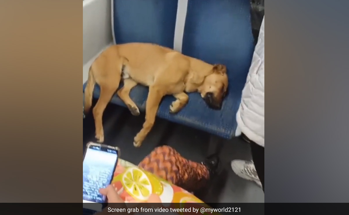 बस में दो लोगों की सीट पर अकेला सो रहा था कुत्ता