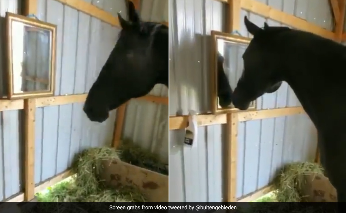 इंटरनेट पर एक वीडियो ने लोगों को हंसने पर मजबूर कर दिया है, जिसमें एक आइना मिलने पर घोड़े (Horse Reaction) की प्रतिक्रिया दिखाई गई है. वीडियो को X (ट्विटर) पर @buitengebieden हैंडल से शेयर किया गया था.