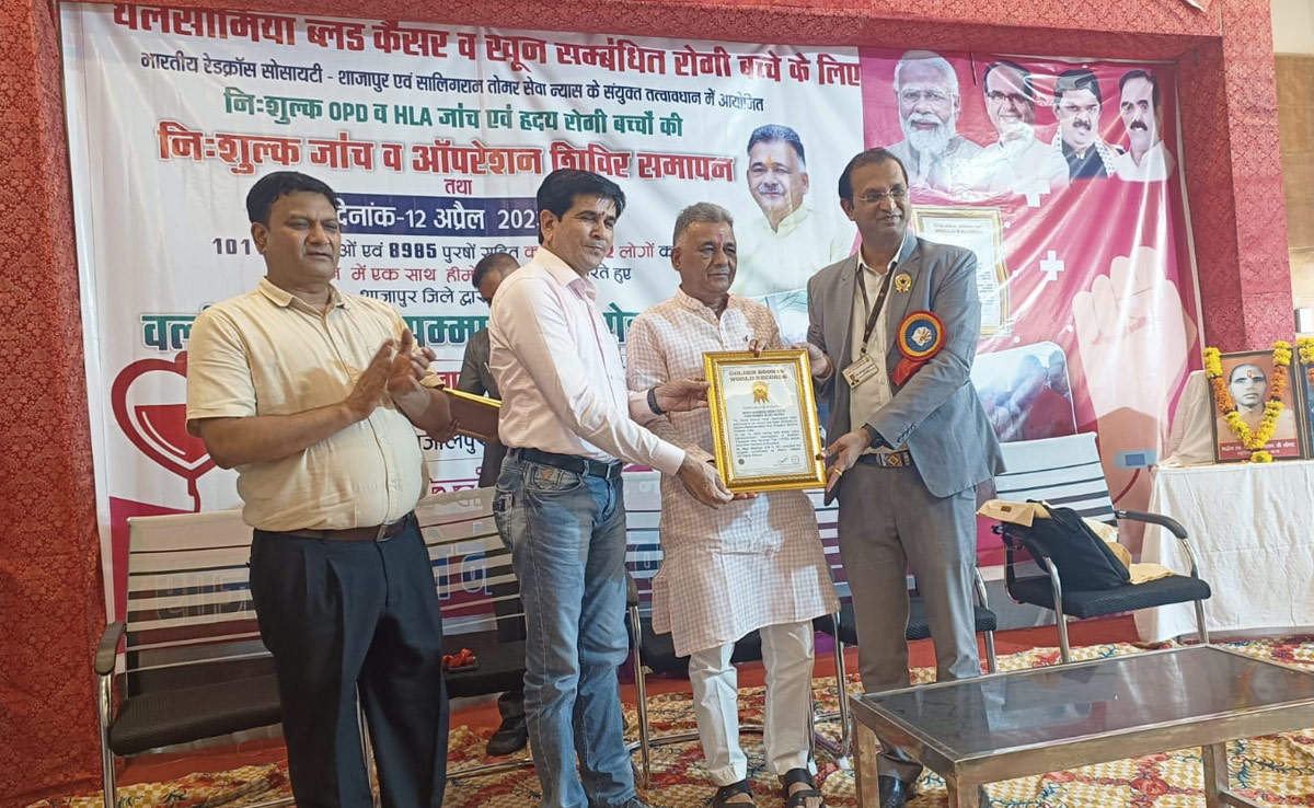 शाजापुर में बना सबसे ज्यादा HLA टेस्ट का रिकॉर्ड, सर्वाधिक हिमोग्लोबिन जांच के लिए मिला सर्टिफिकेट