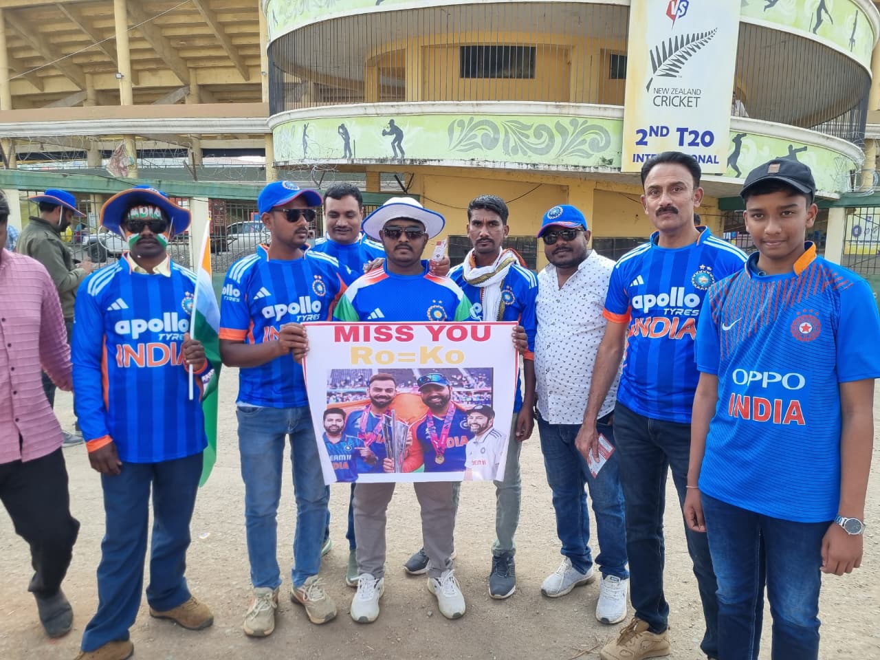 भारत और न्यूजीलैंड T20 मैच को लेकर रायपुर में जबरदस्त उत्साह है. हालांकि विराट कोहली और रोहित शर्मा को फैंस काफी मिस रहे हैं. दरअसल, रायपुर में फैन्स विराट कोहली और राहुल शर्मा के पोस्टर लिए हुए स्टेडियम के बाहर दिखे. इस पोस्टर पर Miss You RO-KO लिखा...