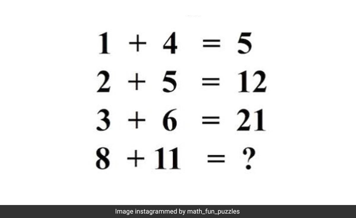 प्रश्न में लिखा है, “क्या आप इस वायरल आईक्यू टेस्ट को हल कर सकते हैं? अगर 1+4= 5, 2+5= 12, 3+6= 22, तो 8+11 क्या है?