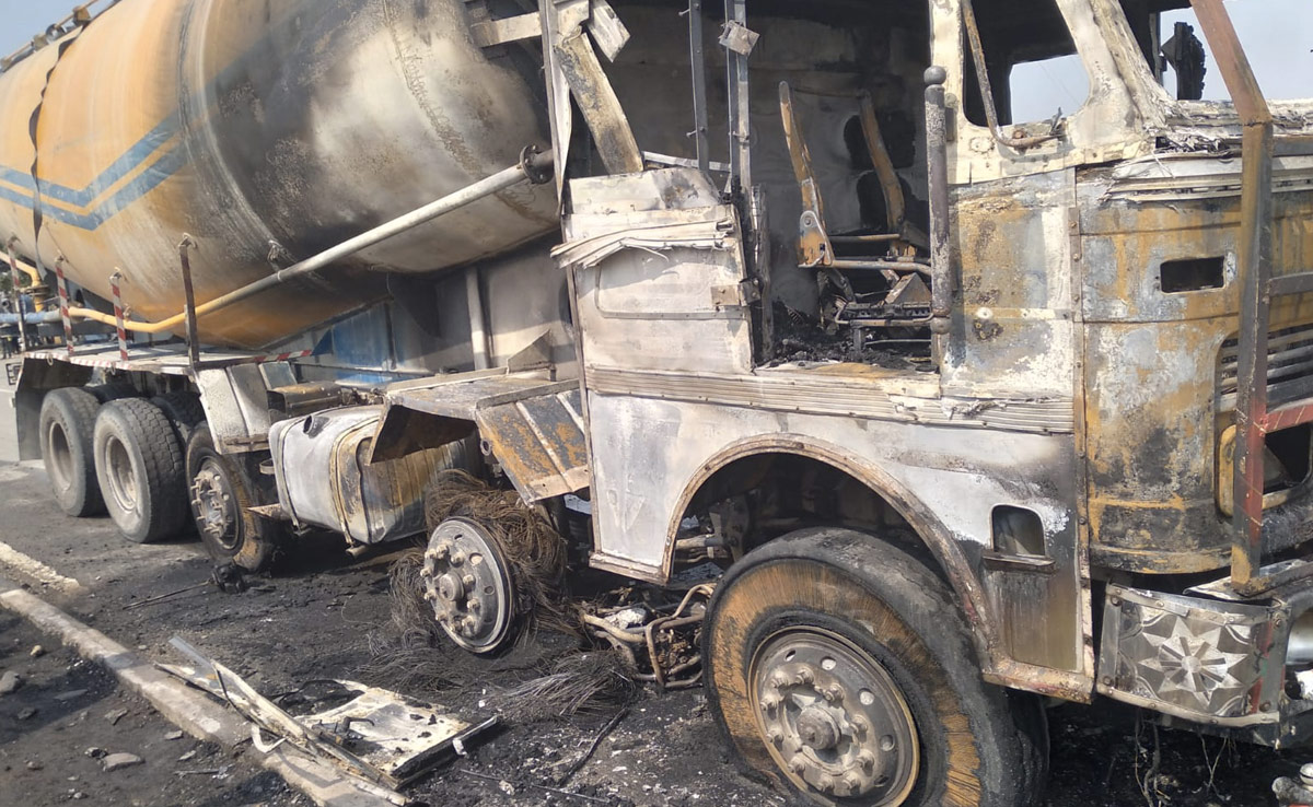मृतक की बाइक आरोपी चालक के टैंकर में फंस चुकी थी और सड़क पर घसिटने के कारण उसमें आग लग गई, जिसके बाद बल्कर चालक वाहन छोड़कर भाग निकला. हादसे के बाद बल्कर में भी आग लग गई.